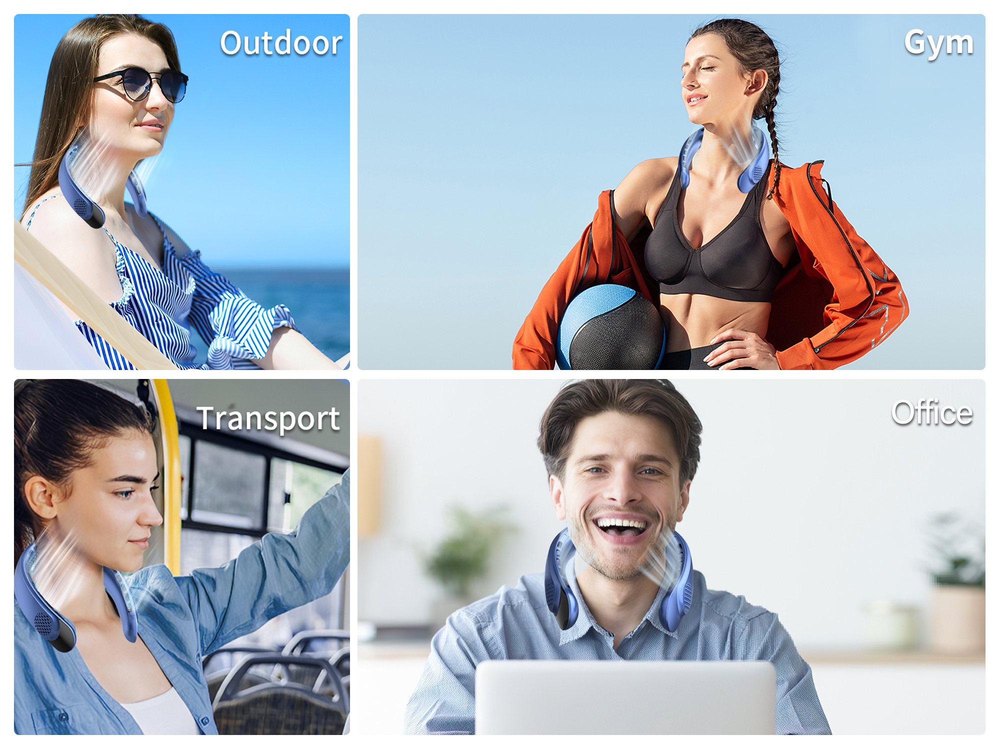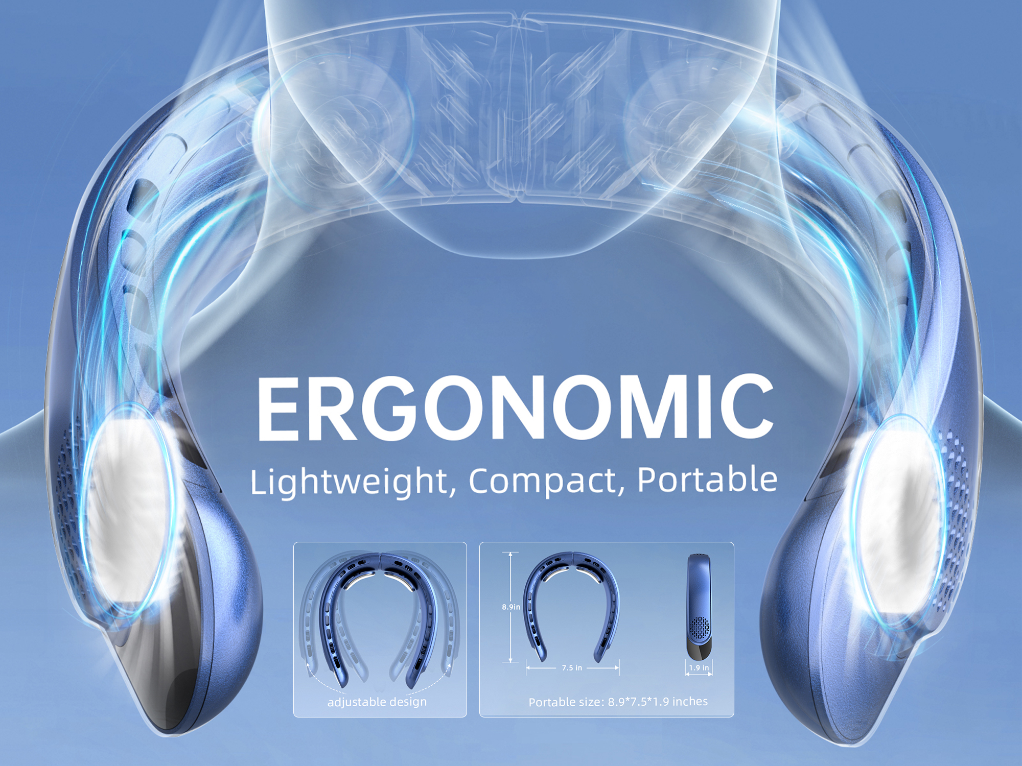 Носимое охлаждение для активного образа жизни MIJIDI S8 создан для тех, кто ценит прохладу во время прогулок, тренировок, фестивалей и путешествий. Этот шейный вентилятор мягко обхватывает шею, освобождая руки и обеспечивая равномерный поток воздуха. Его эргономичная форма удобно ложится на плечи, позволяя наслаждаться им как на улице, так и в помещении без каких-либо усилий. Будь то поездка на работу в жаркую погоду или поездка на выходные, S8 преобразит ваши ощущения, представив собой надежный портативный вентилятор, готовый к реальному использованию.