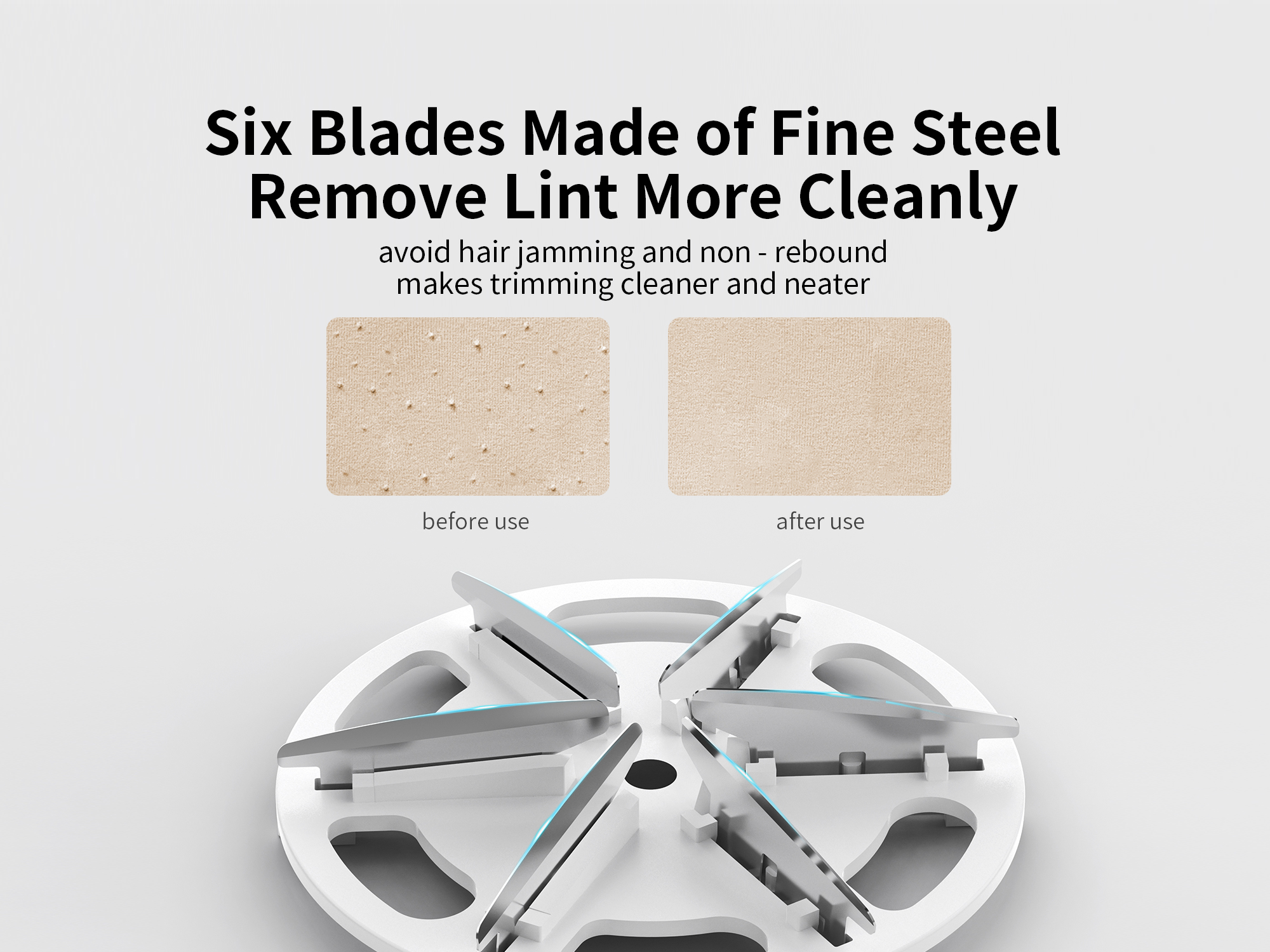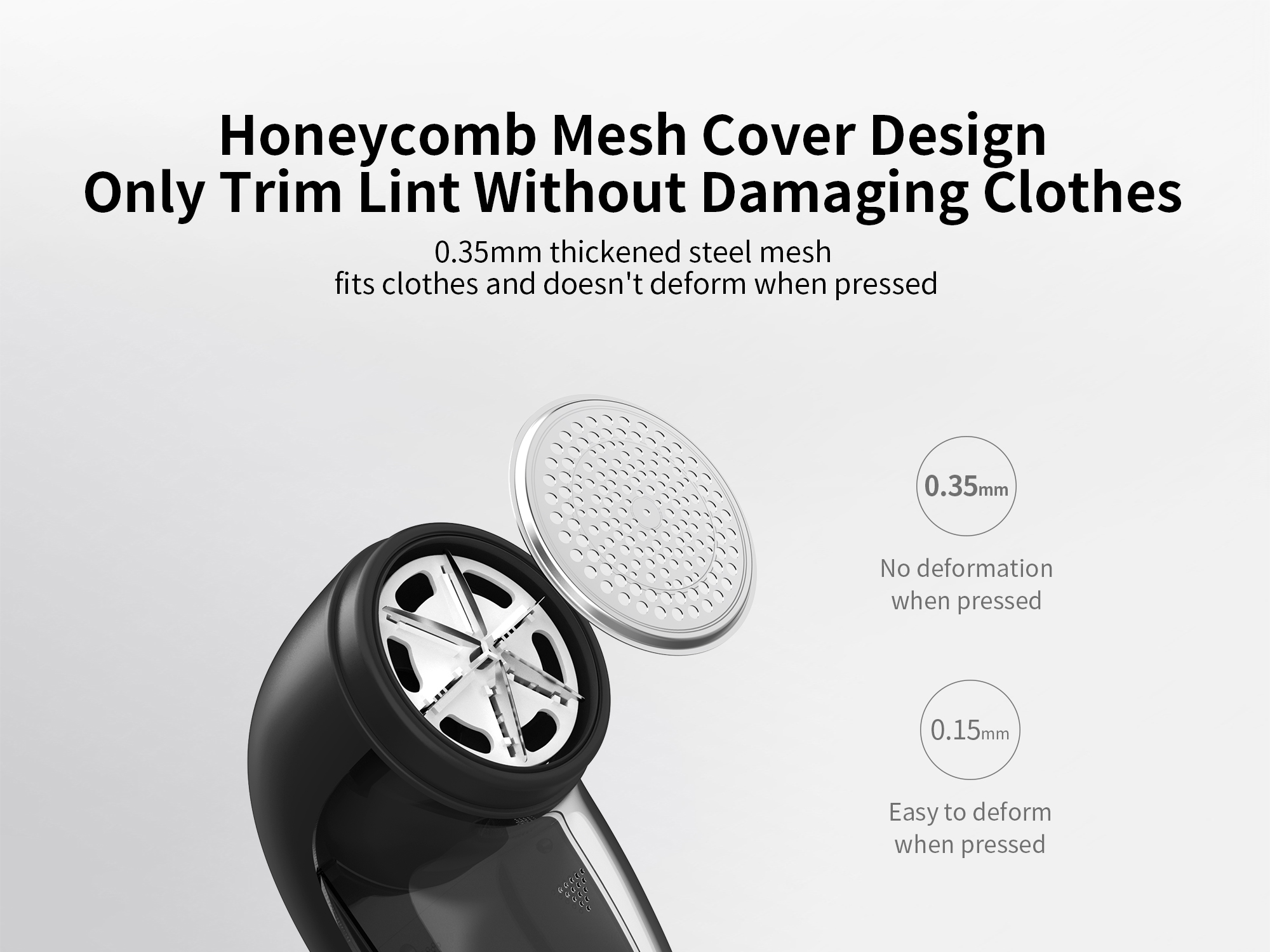 Система точной резки для безопасного и бережного ухода за тканью Бритва для ткани MIJIDI Q15 оснащена прочной системой вращающихся лезвий из нержавеющей стали, которая безопасно удаляет ворс и пух, не повреждая деликатные ткани. Защитная сетка с сотовым узором защищает одежду от зацепок, обеспечивая плавный и равномерный контакт с тканью для оптимального ухода. Каждое движение выполняется легко и без усилий — от свитеров до обивки — восстанавливая мягкость и чистоту текстуры всех тканей.